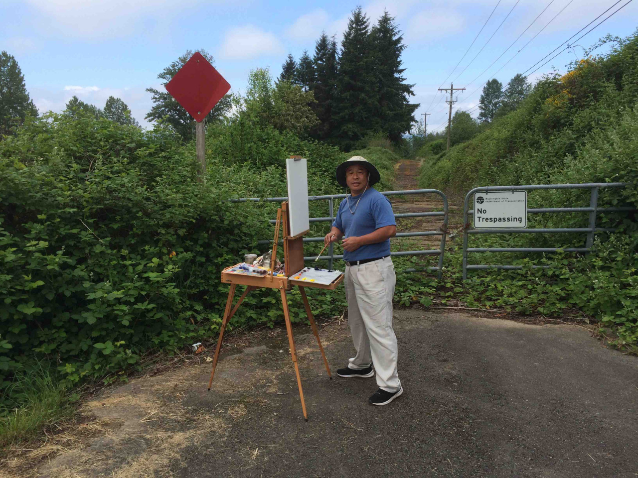 Gathering reinforcements and prepping for another onslaught. With my student Bin Li at Snohomish Valley viewpoint.