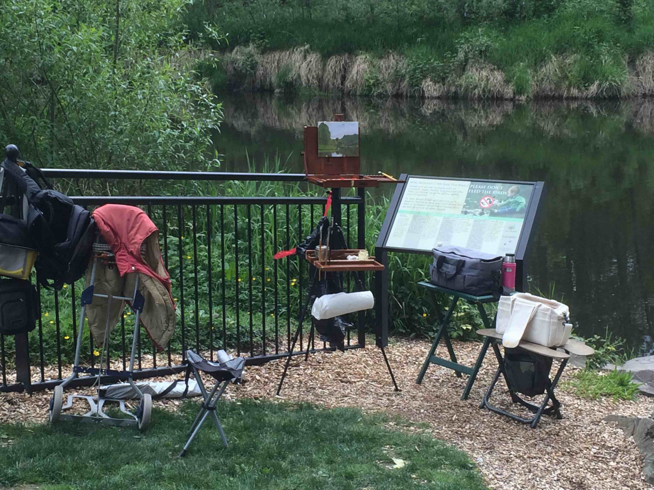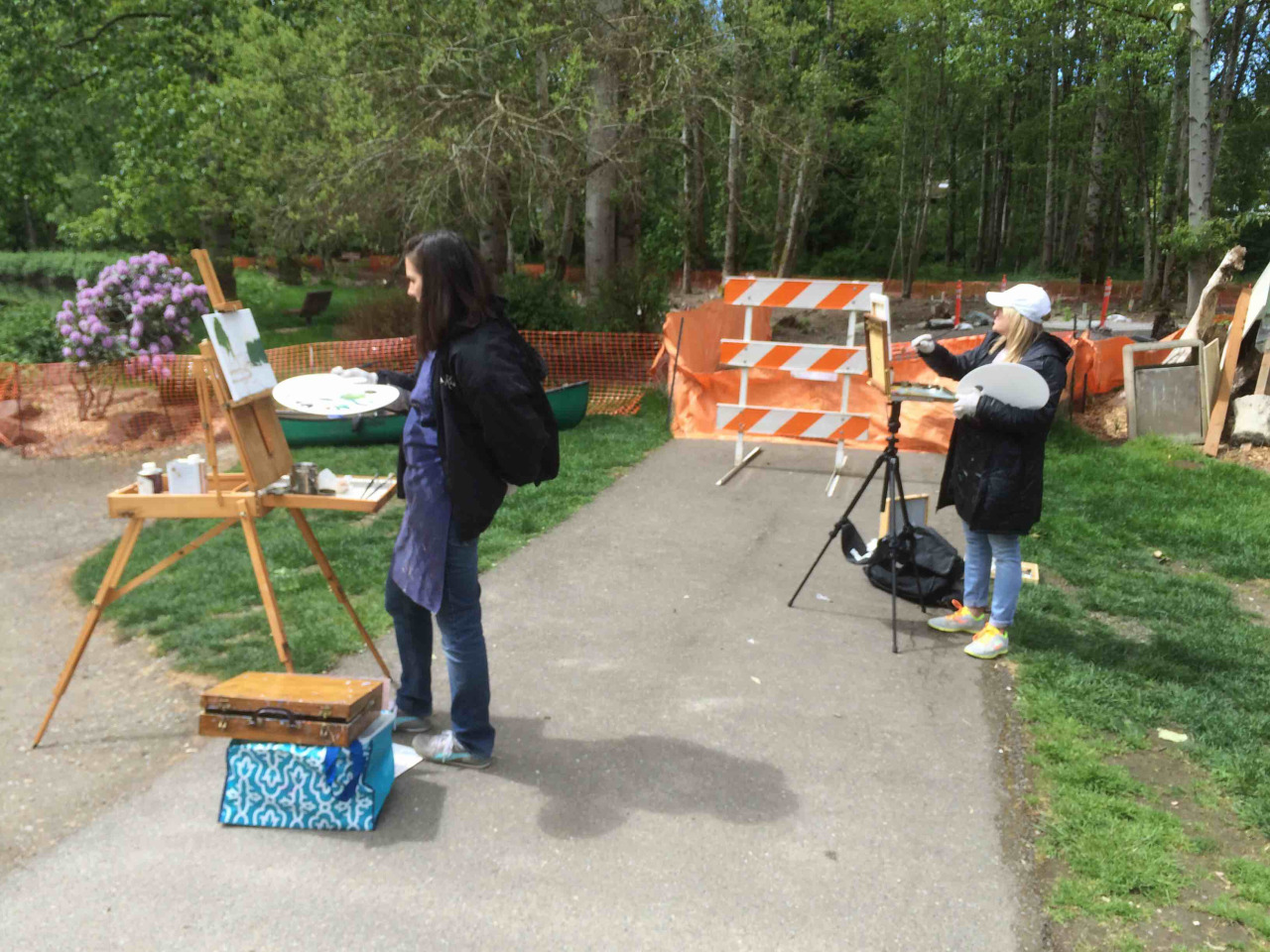 Plein air painting with students Sarah Anderson and Julie Stonebraker at Bothell Landing. The weather has been very changeable, but beautiful nonetheless