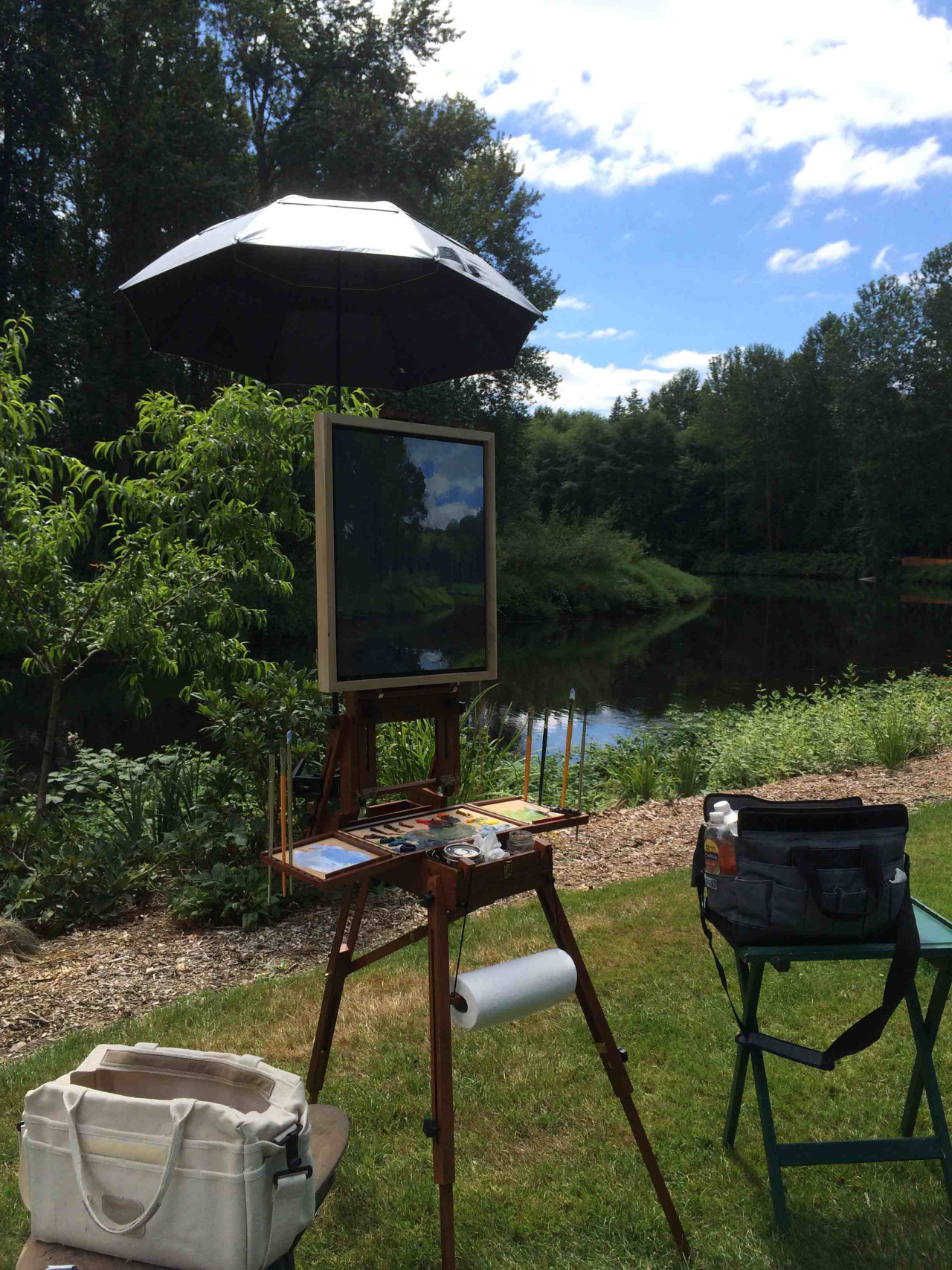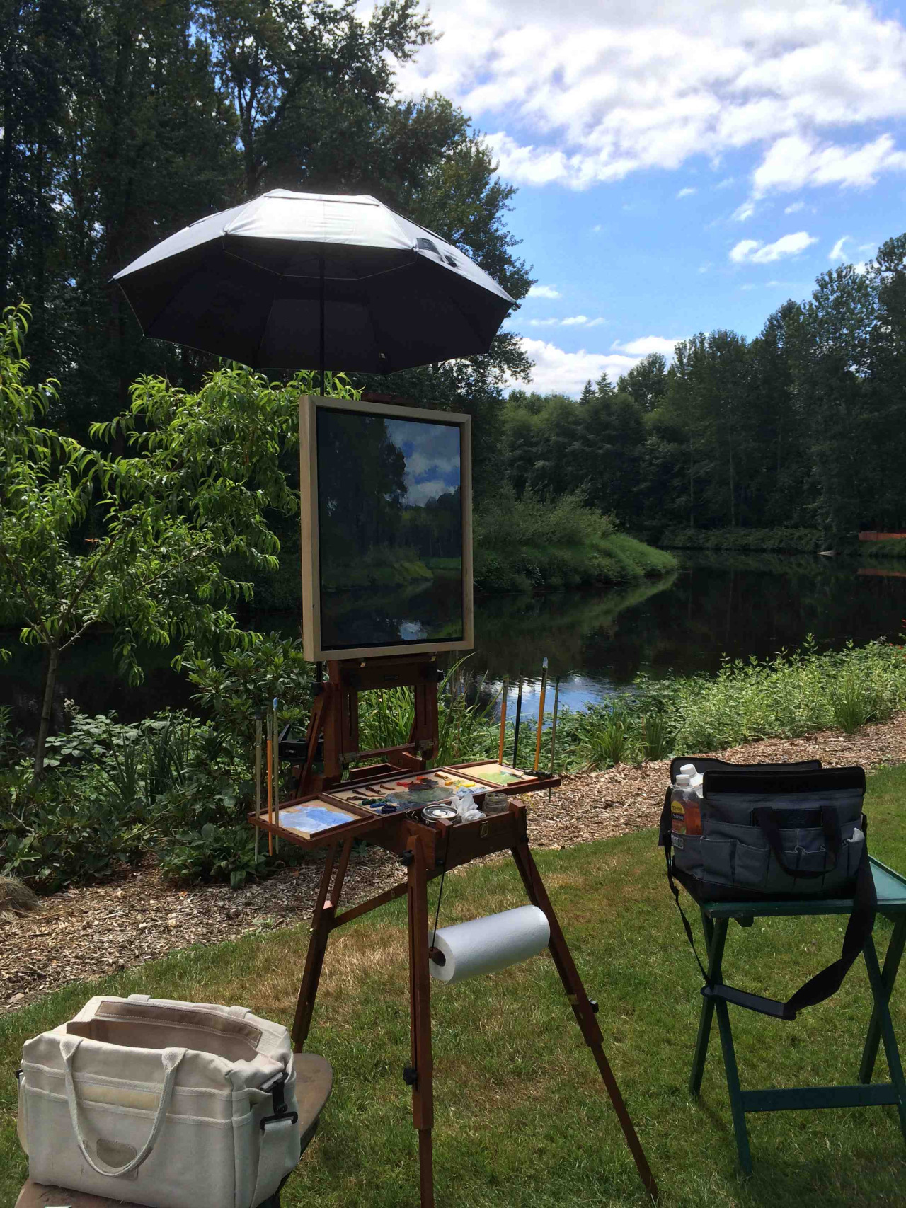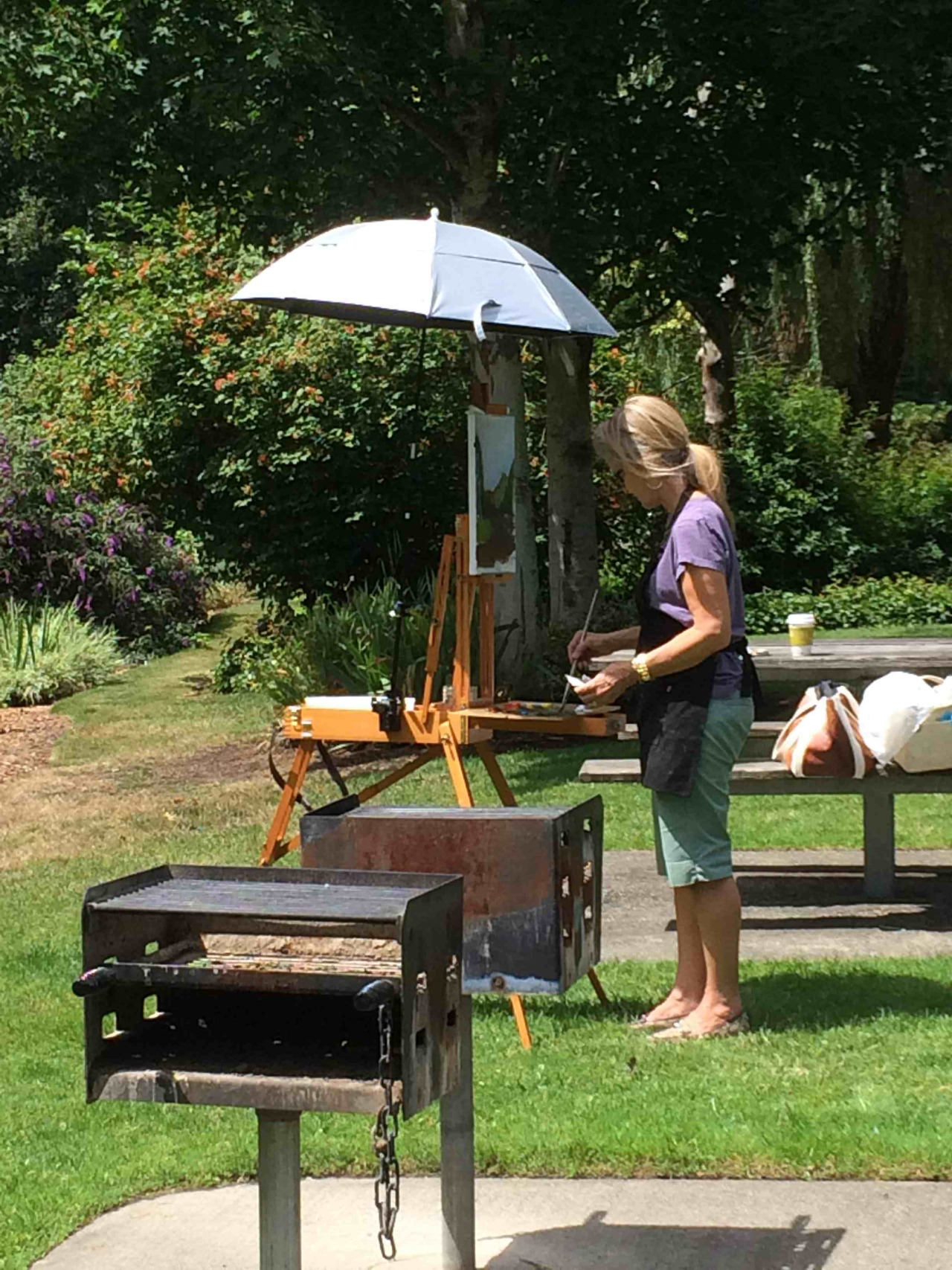 Plein air session at The Park at Bothell Landing, with student Linda Bonica.