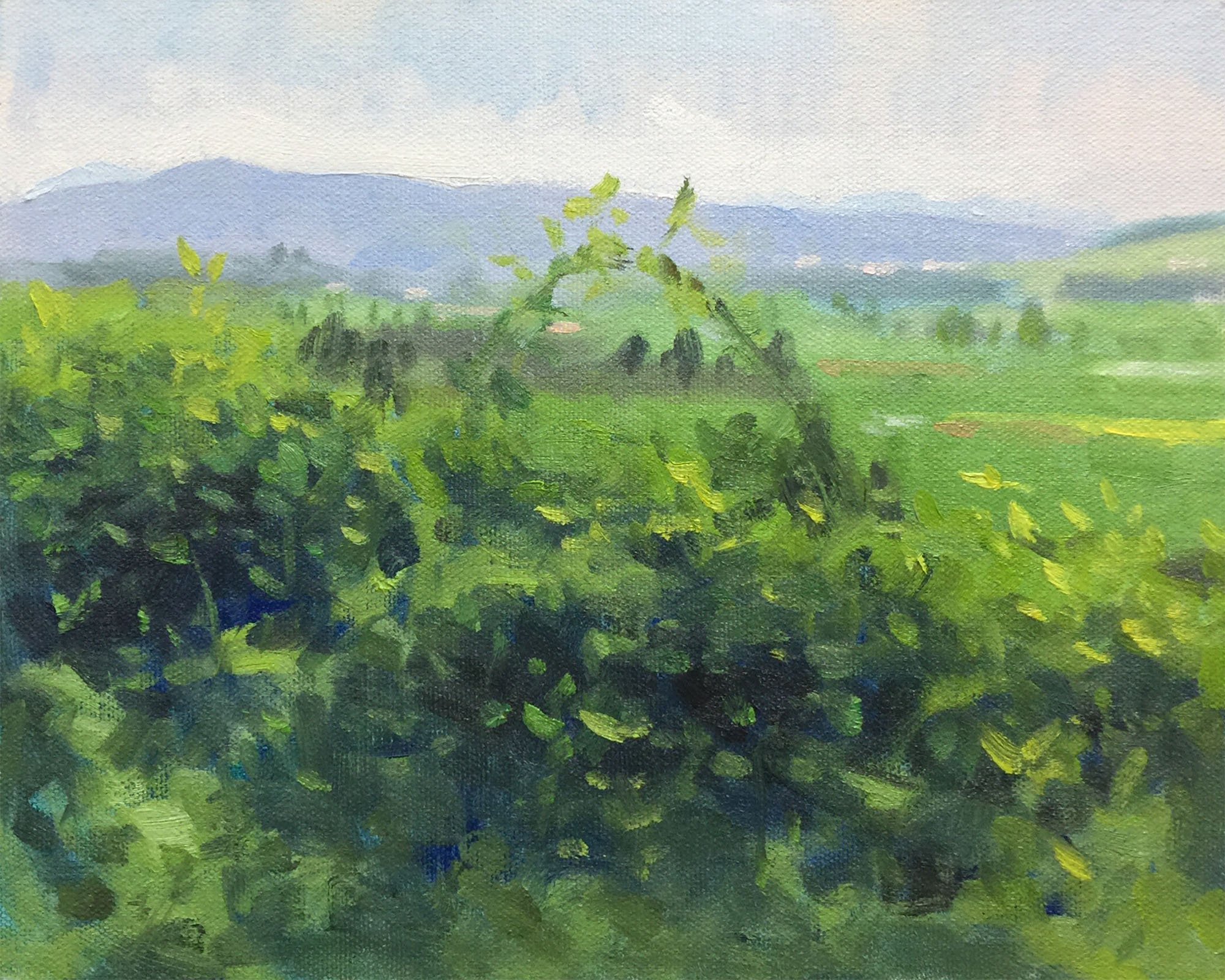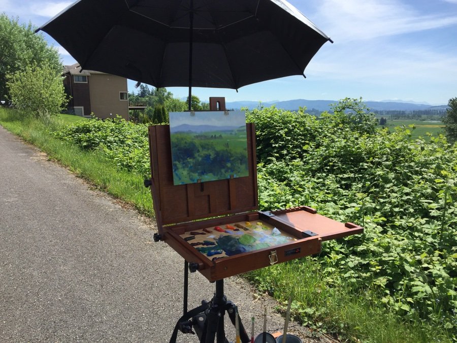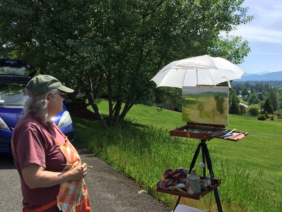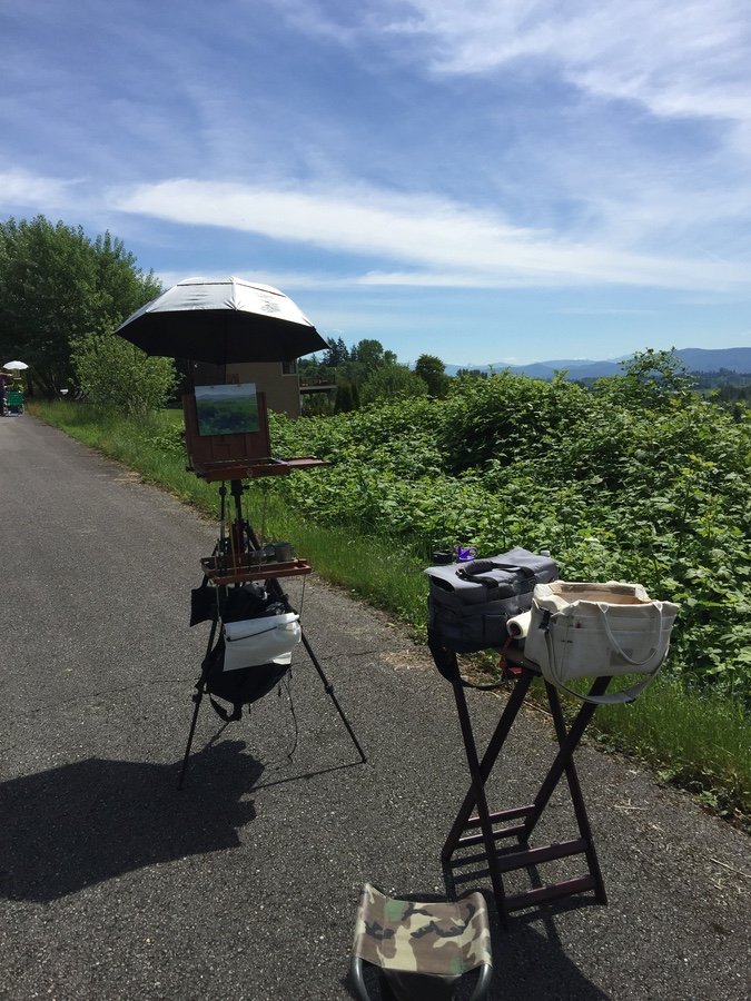 Plein air on a brilliant Sunday afternoon. Attended by Kathy Paul, who set up so far away that I had to walk a mile to view and critique her work
