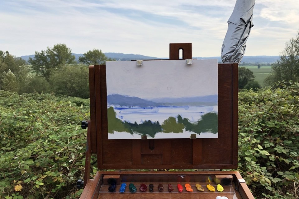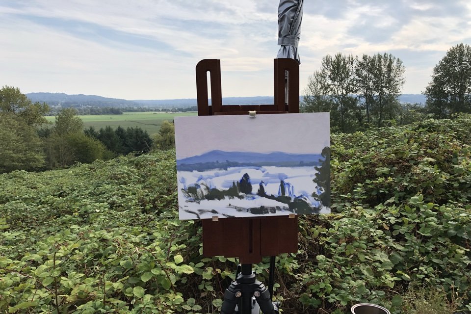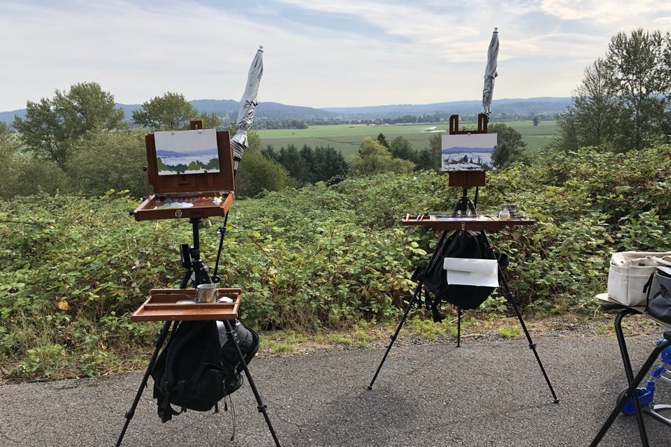 Working on two small studies at once. With Bin Li at Snohomish Valley viewpoint.